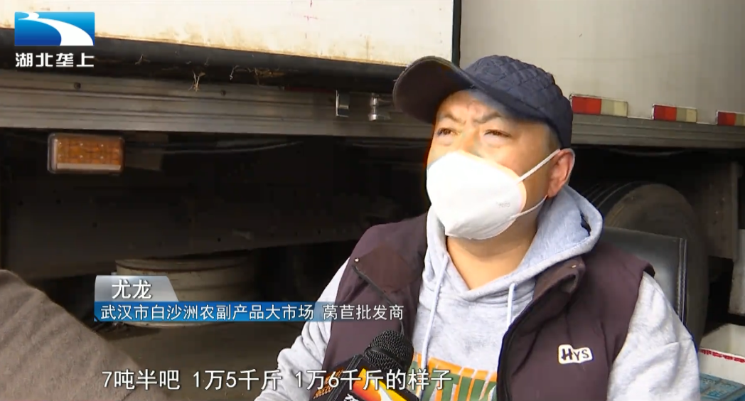 武漢市白沙洲農(nóng)副產(chǎn)品大市場萵苣批發(fā)商 尤龍:我們一天銷一車一點問題都沒有,一車15000斤、16000斤的樣子。