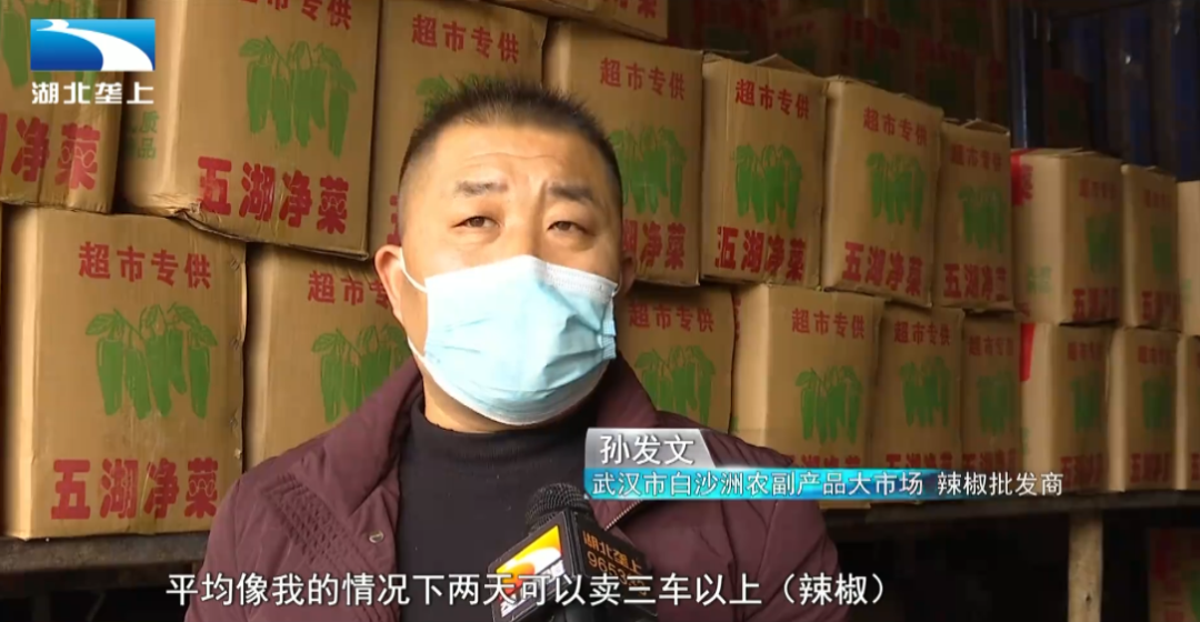 武漢市白沙洲農(nóng)副產(chǎn)品大市場青椒批發(fā)商 孫發(fā)文:平均像我的情況下,兩天可以賣3車以上,1車15噸,一天平均大概在20幾頓左右。我自己每天的是1到2車左右,市場的話應該在20車,20車涉及多個品種,在60噸左右。